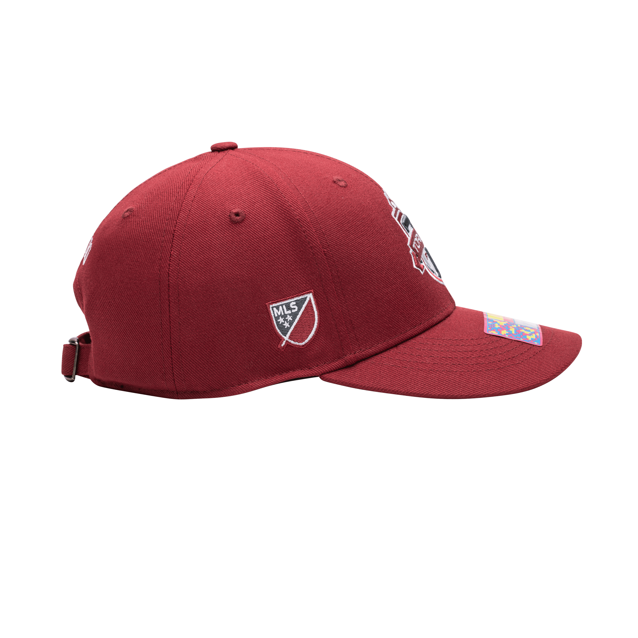 This Standard Adjustable hat features a front 3D embroidery of the team logo and a sonic weld suede wrap label on the back. That style of the hat is very crisp as it only utilizes one of the team colors for its crown, peak and adjustable slider buckle.