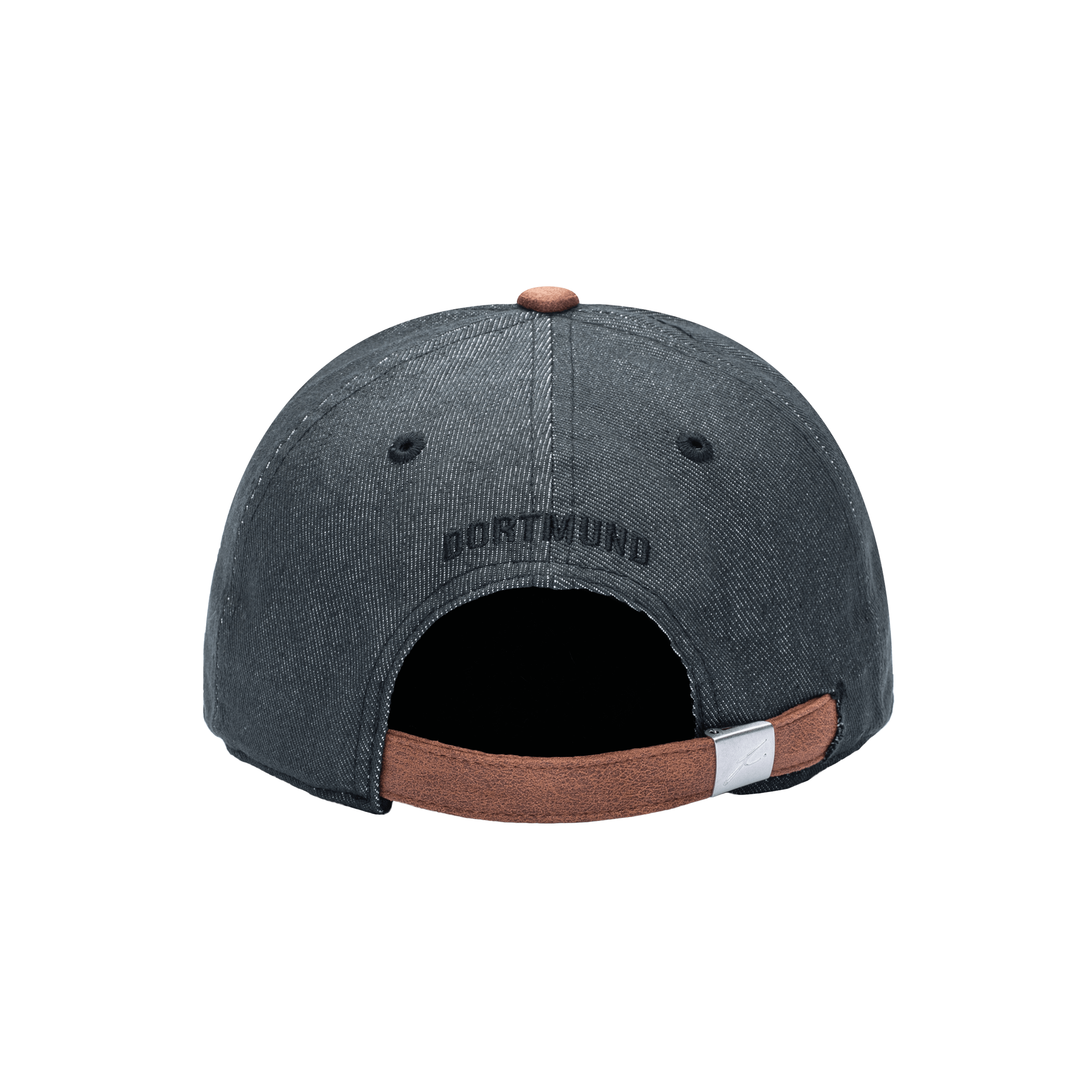 Back view of the Borussia Dortmund Pegasus Classic hat with low unstructured crown, curved peak brim, and buckle closure, in black.