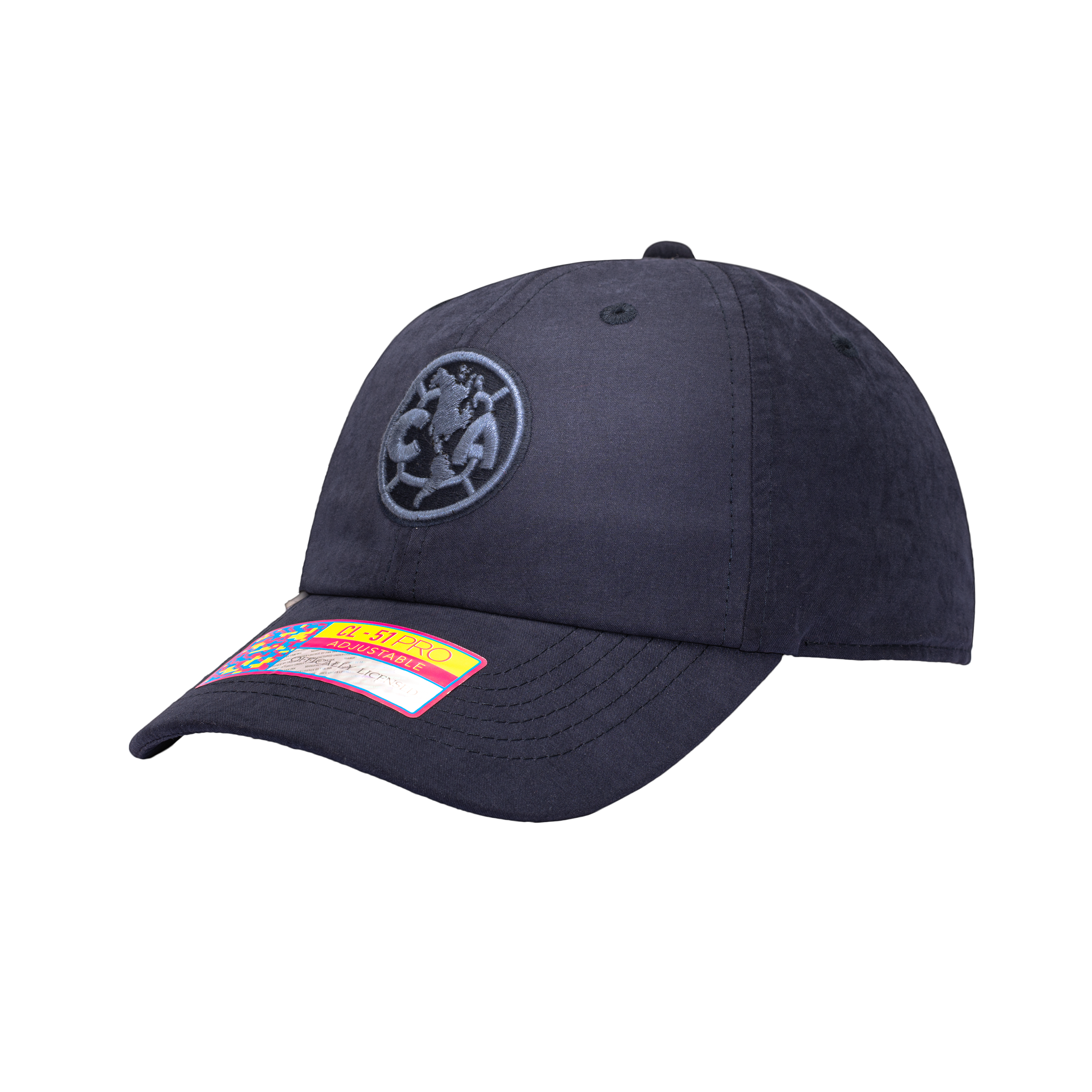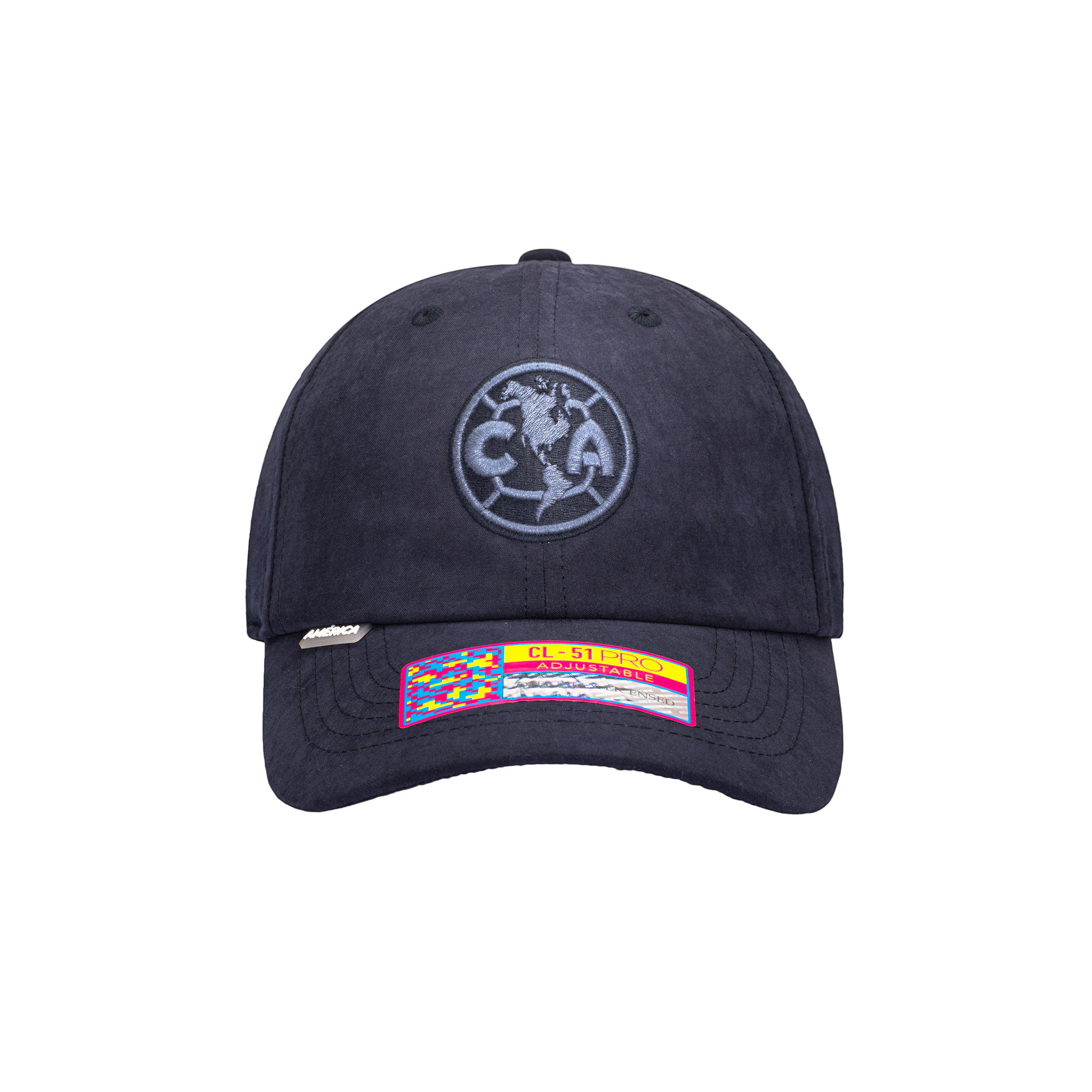 This Club America officially licensed Ultra Light hat features team logo with cotton embroidery on the front and a PVC tab on the peak. The hat is made of 100% Polyester. Support your team in this 6-panel low crown, curved peak adjustable hat!