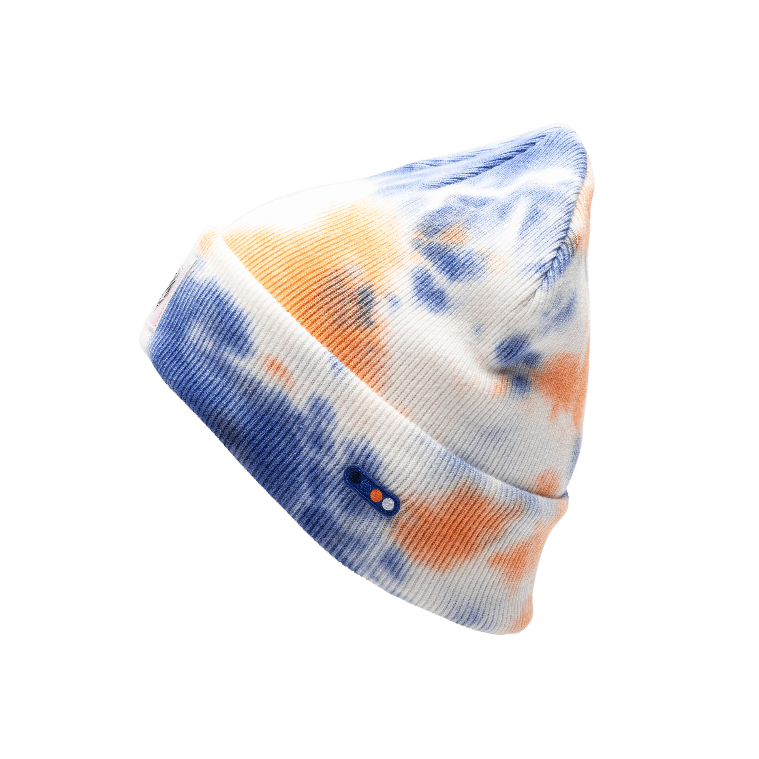 This is not your typical cuffed beanie silhouette; daringly pushing conventional boundaries, this tie-dyed beanie paired with an embossed iridescent club patch viscerally disrupts the status quo. Psychedelic is more than just a name; it is a bold piece of headwear.