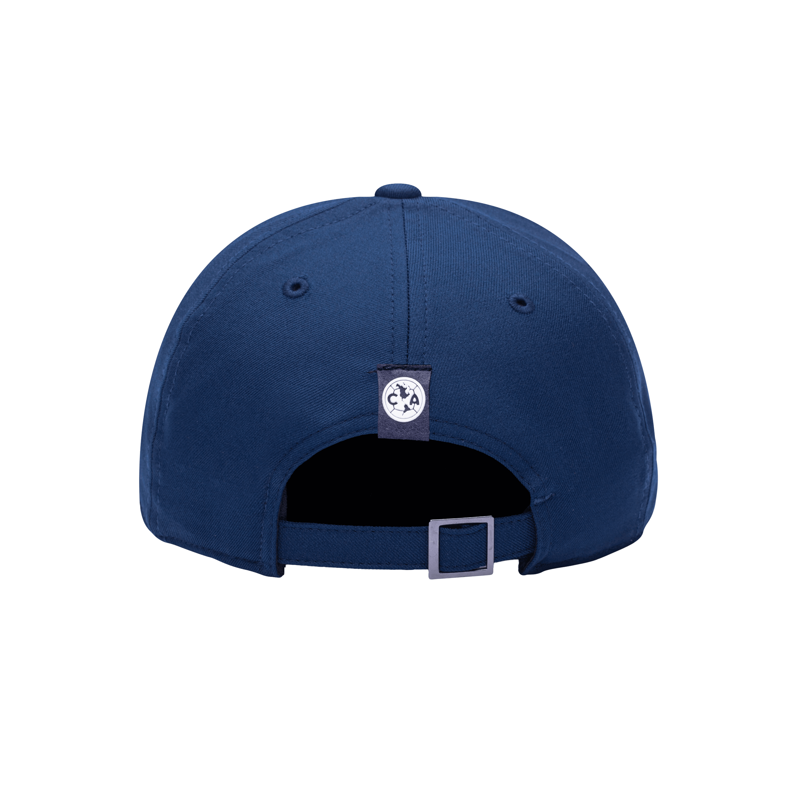 Back view of the Club America Standard Adjustable hat with mid constructured crown, curved peak brim, and slider buckle closure, in Navy.