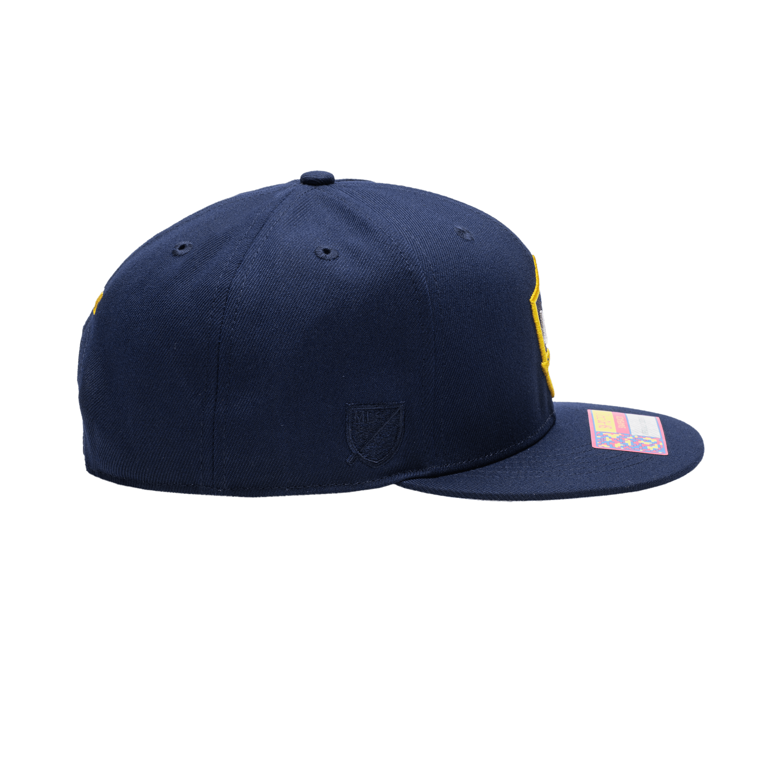 This Dawn hat features a front 3D embroidery of the team logo as well as a back embroidery of the year the team was founded. It makes use of team colors for the back embroidery of the year the team was founded to represent your true team spirit! The hat has a high crown and a flat peak that has a contrasting grey underpeak.