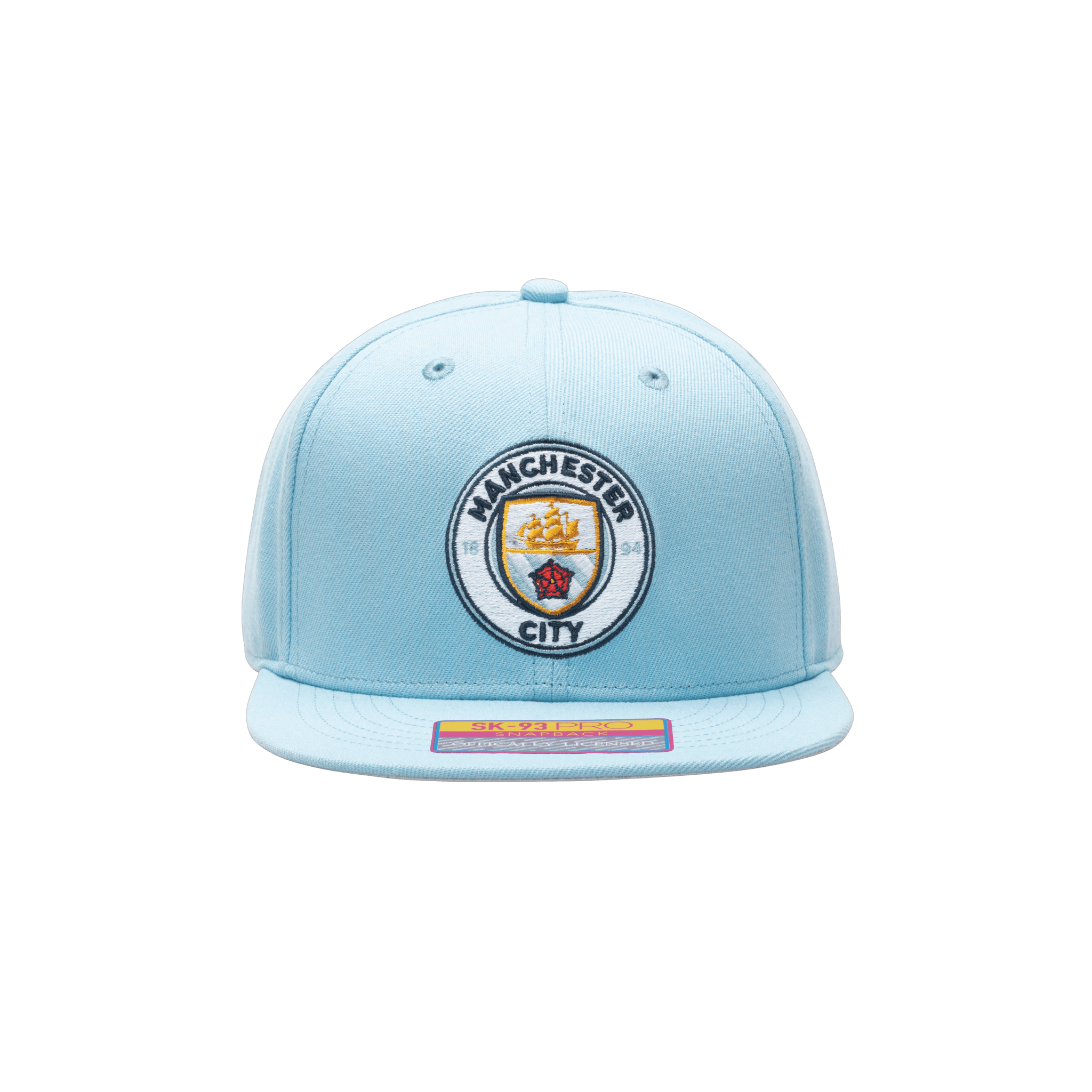 The Manchester City Dawn Snapback hat lets you show your support for this team in style!. The Dawn hat features a front 3D embroidery of the team logo as well as a back embroidery of the year the team was founded. It makes use of team colors for the back embroidery of the year the team was founded to represent your true team spirit! The hat has a high crown and a flat peak that has a contrasting grey underpeak.