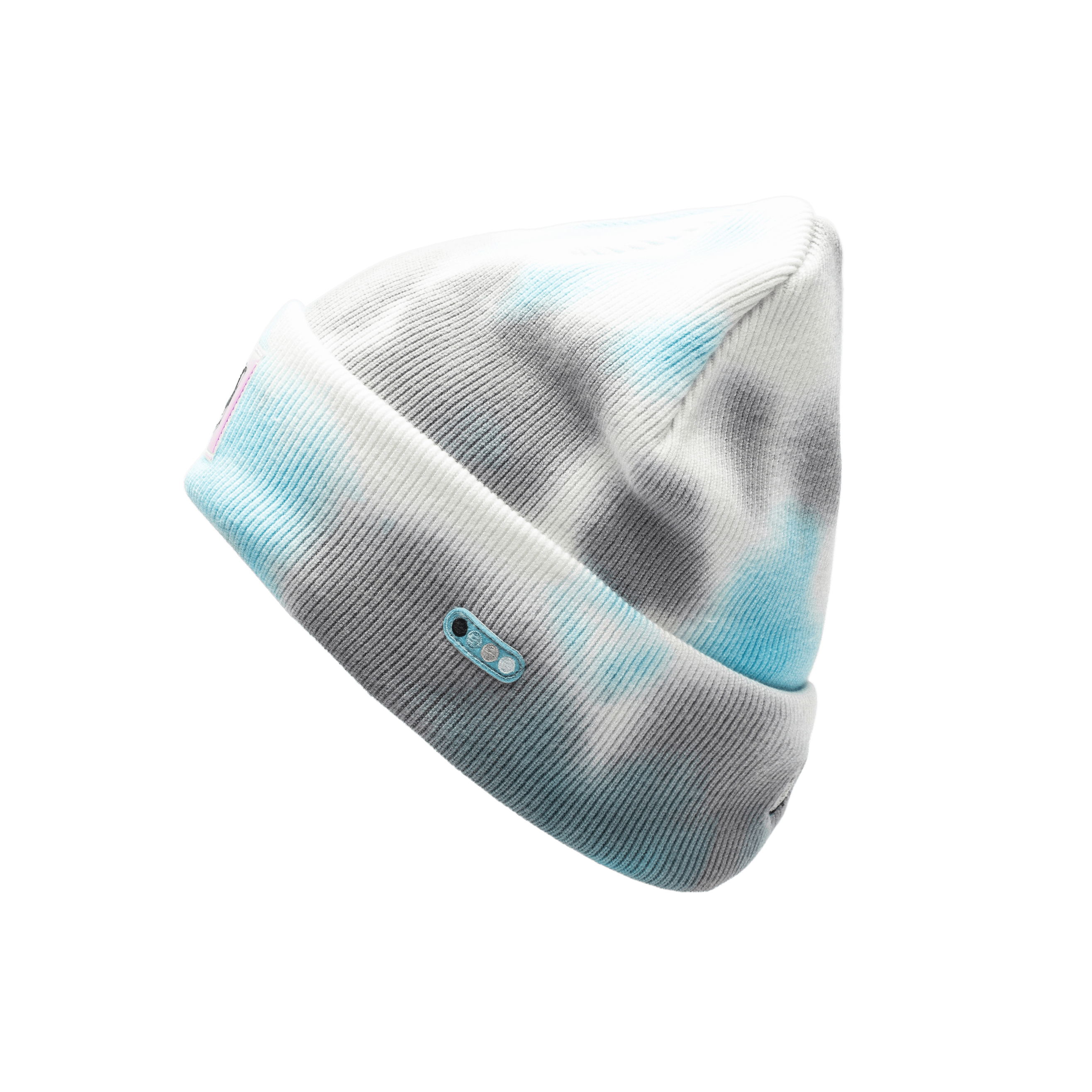 This is not your typical cuffed beanie silhouette; daringly pushing conventional boundaries, this tie-dyed beanie paired with an embossed iridescent club patch viscerally disrupts the status quo. Psychedelic is more than just a name; it is a bold piece of headwear.